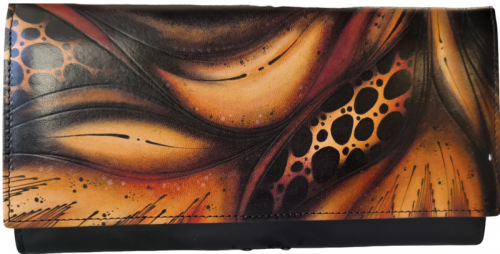 Dámská peněženka klasického, podlouhlého formátu. Zapínání klopny drukem. Uvnitř pět volných přihrádek, střední zipová přihrádka a pět míst na karty. Na zadním vnějším panelu volná přhrádka a zipová kapsa na mince. Excelentní kvalita šití a použitých materiálů.