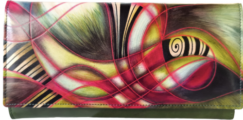 Dámská peněženka klasického, podlouhlého formátu. Zapínání klopny drukem. Uvnitř pět volných přihrádek, střední zipová přihrádka a pět míst na karty. Na zadním vnějším panelu volná přhrádka a zipová kapsa na mince. Excelentní kvalita šití a použitých materiálů.