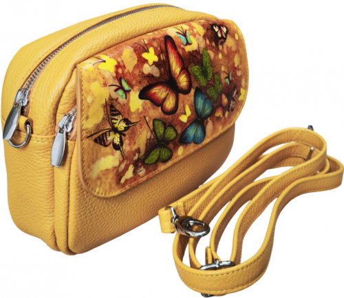 Luxusní ručně malovaná dámská kožená kabelka - crossbody DK17