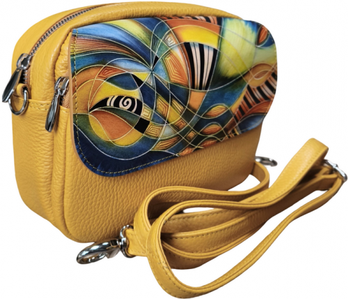 Luxusní ručně malovaná dámská kožená kabelka - crossbody DK17