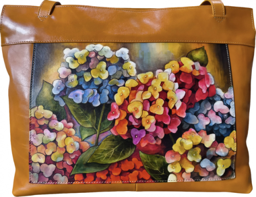 Luxusní ručně malovaná dámská kožená kabelka typ DK16 - shopper