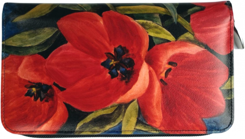 Dámská peněženka největšího formátu v nabídce. Dvě nezávisle otevíratelné sekce: první na bankovky a mince uzavíraná zipem, druhá na doklady a karty jištěná drukem. Celkem třináct míst na karty, přihrádka se síťkou pro vložení dokladů či fota. Excelentní kvalita šití a použitých materiálů.