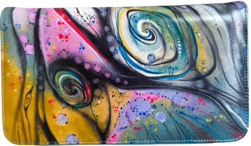 Dámská ručně malovaná velká kožená peněženka D01