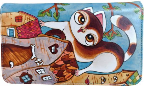 Dámská ručně malovaná velká kožená peněženka D01