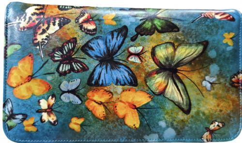 Dámská peněženka největšího formátu v nabídce. Dvě nezávisle otevíratelné sekce: první na bankovky a mince uzavíraná zipem, druhá na doklady a karty jištěná drukem. Celkem třináct míst na karty, přihrádka se síťkou pro vložení dokladů či fota. Excelentní kvalita šití a použitých materiálů.